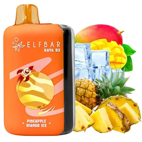 ELF BAR RAYA D3 - Pineapple Mango Ice - To orzeźwiająca mieszanka słodkiego ananasa i soczystego mango z nutą chłodu mentolu.